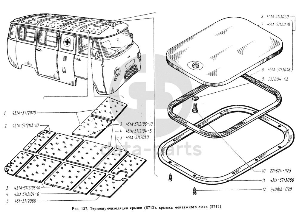 Термошумоизоляция крыши, крышка монтажного люка УАЗ 2206