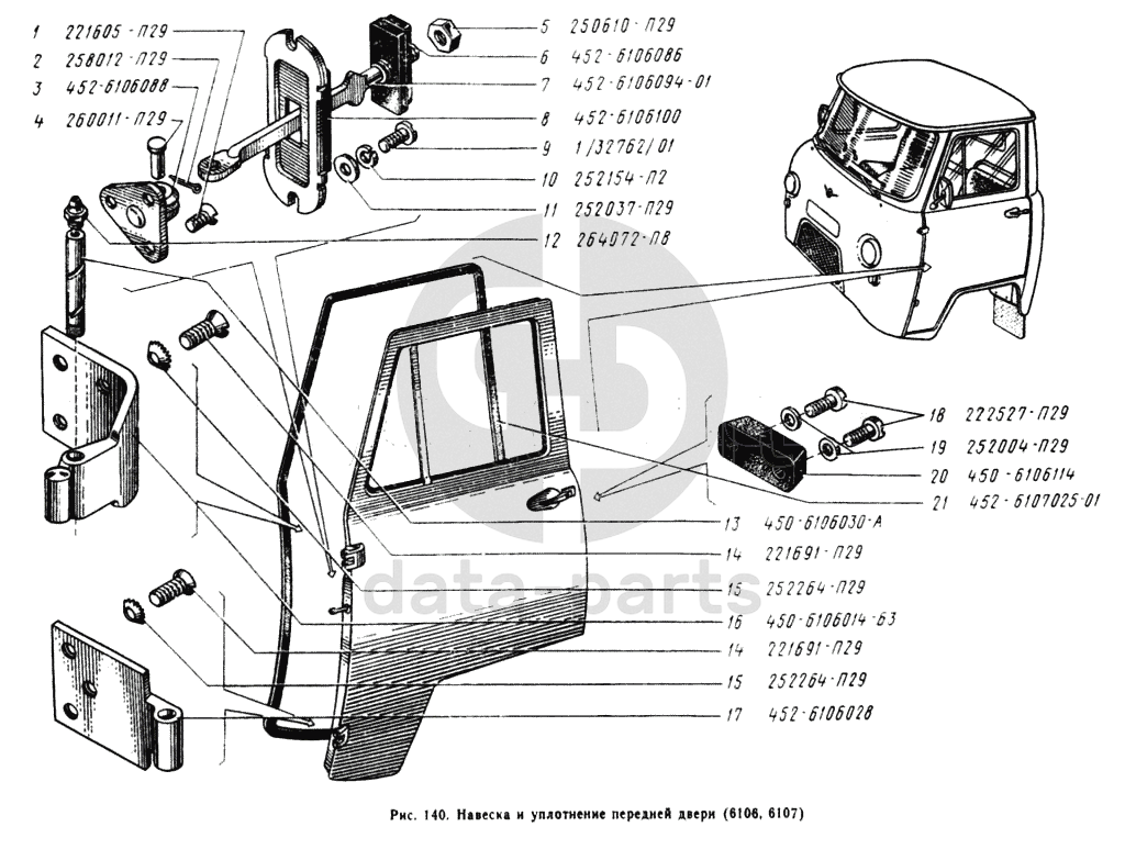 Навеска передней двери, уплотнение передней двери УАЗ 2206