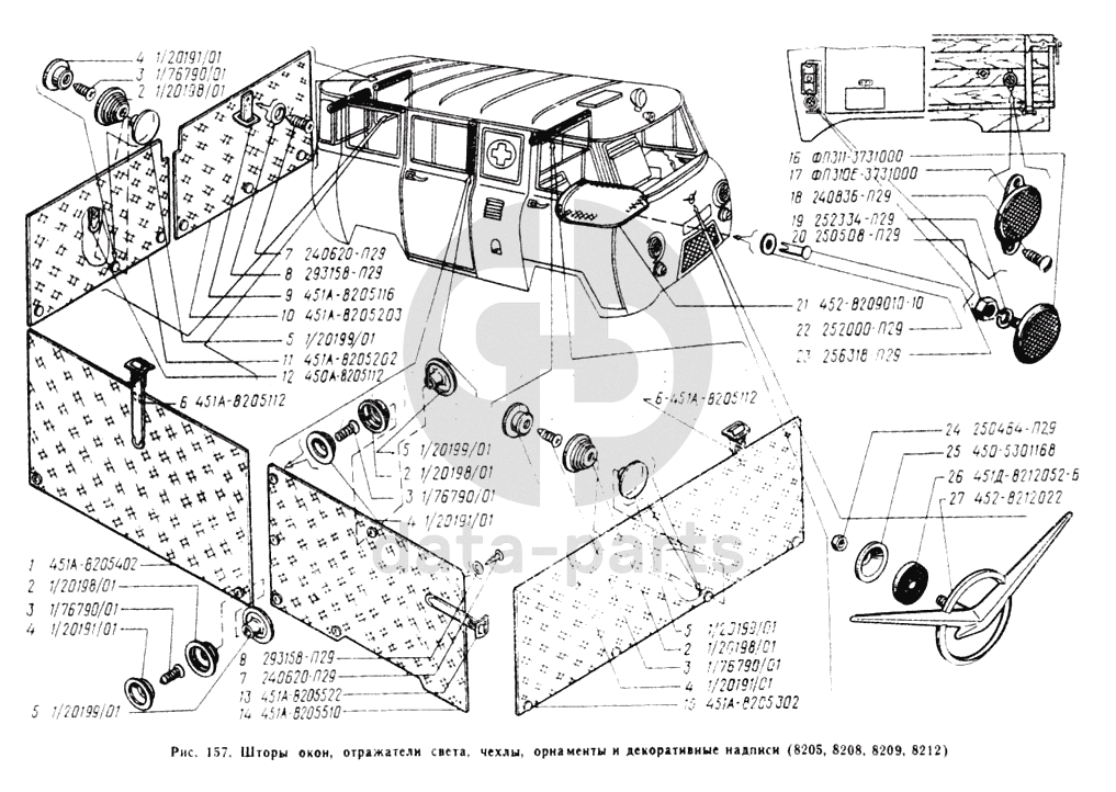 Шторы окон, отражатели свеча, чехлы, орнаменты и декоративные надписи УАЗ 2206