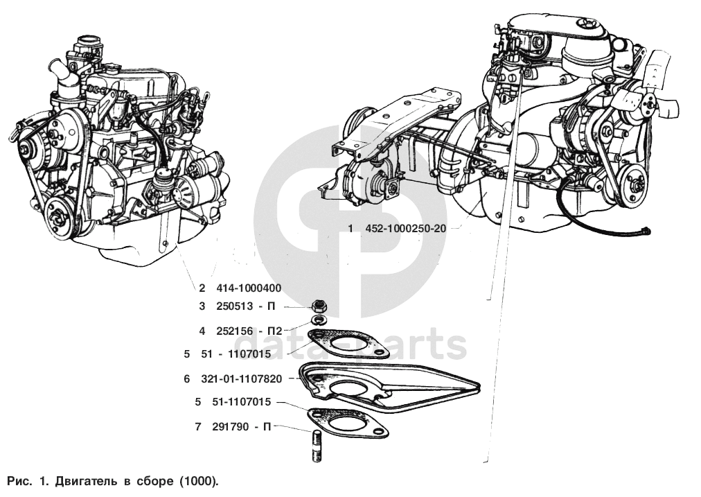 Двигатель в сборе (полностью укомплектованный для установки на шасси)