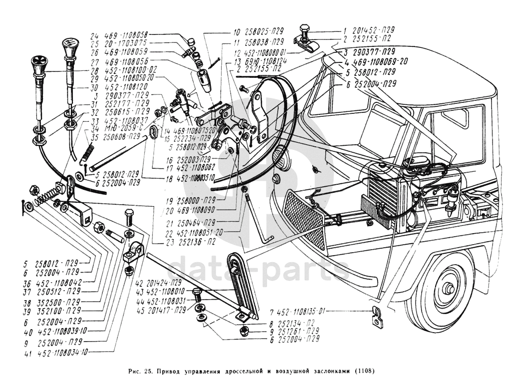 Привод управления дроссельной и воздушной заслонками УАЗ 2206