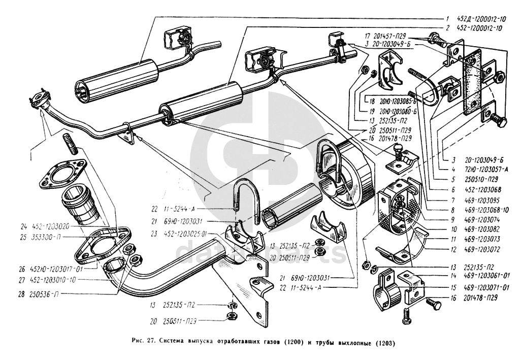 Система выпуска отработавших газов, трубы выхлопные УАЗ 2206