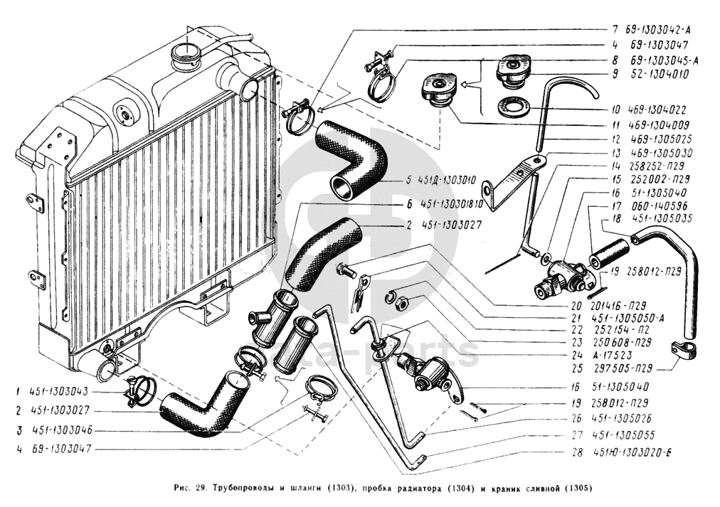 Трубопроводы и шланги, пробка радиатора и краник сливной УАЗ 2206