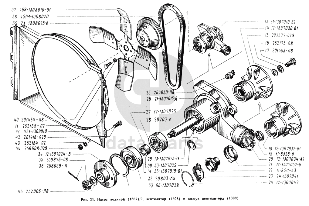 Вентилятор, кожух вентилятора и насос водяной УАЗ 2206