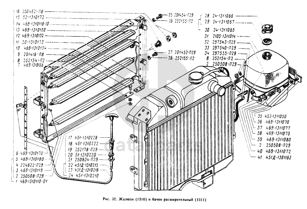Жалюзи и привод, бачок расширительный УАЗ 2206