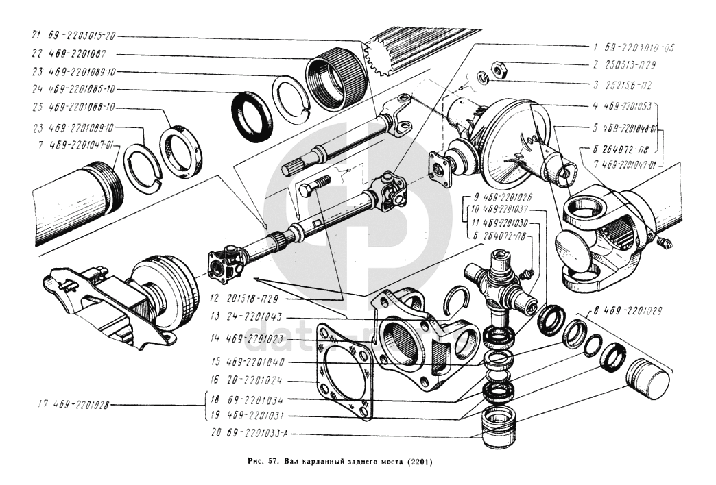 Вал карданный (Состоит из трубы 69-2203018-В, шлицованного конца 469-2201020-10 и вилки 469-2201032)