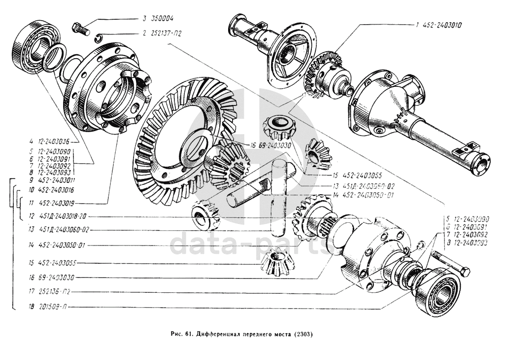 Дифференциал переднего моста с ведомой шестерней главной передачи в сборе
