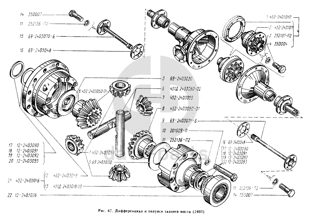 Дифференциал и полуоси заднего моста УАЗ 2206