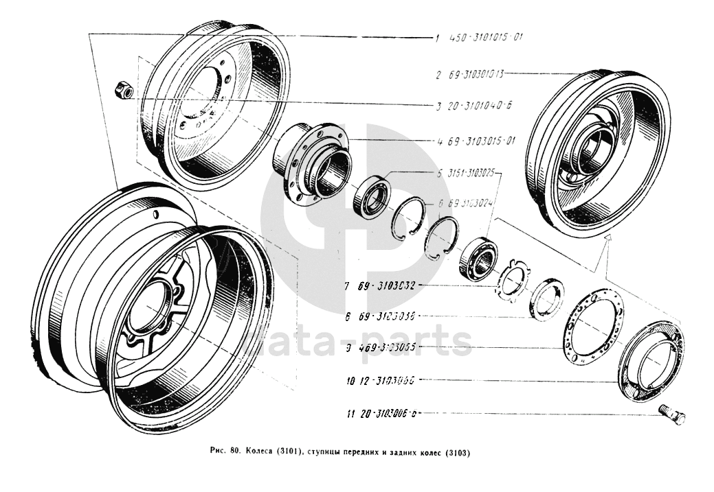 Колеса, ступицы передних и задних колес УАЗ 2206