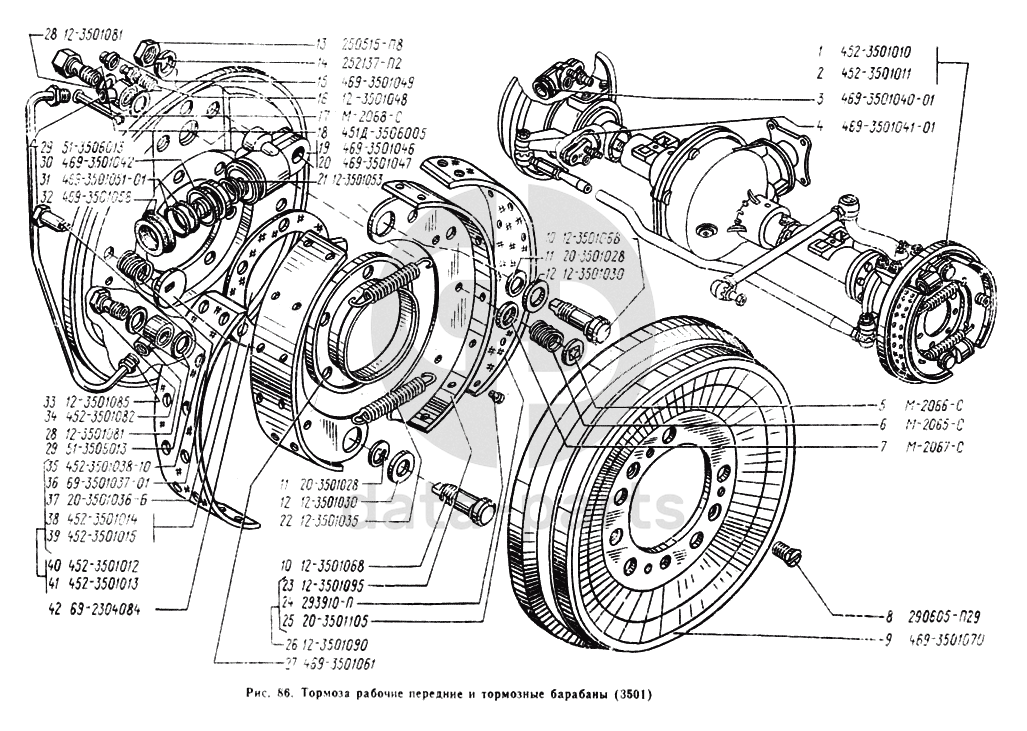 Тормоза рабочие передние и барабаны тормозные УАЗ 2206