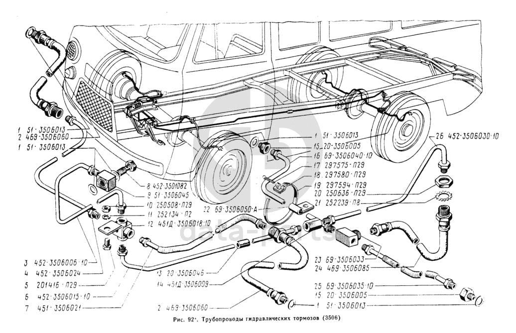 Трубопроводы гидравлических тормозов УАЗ 2206