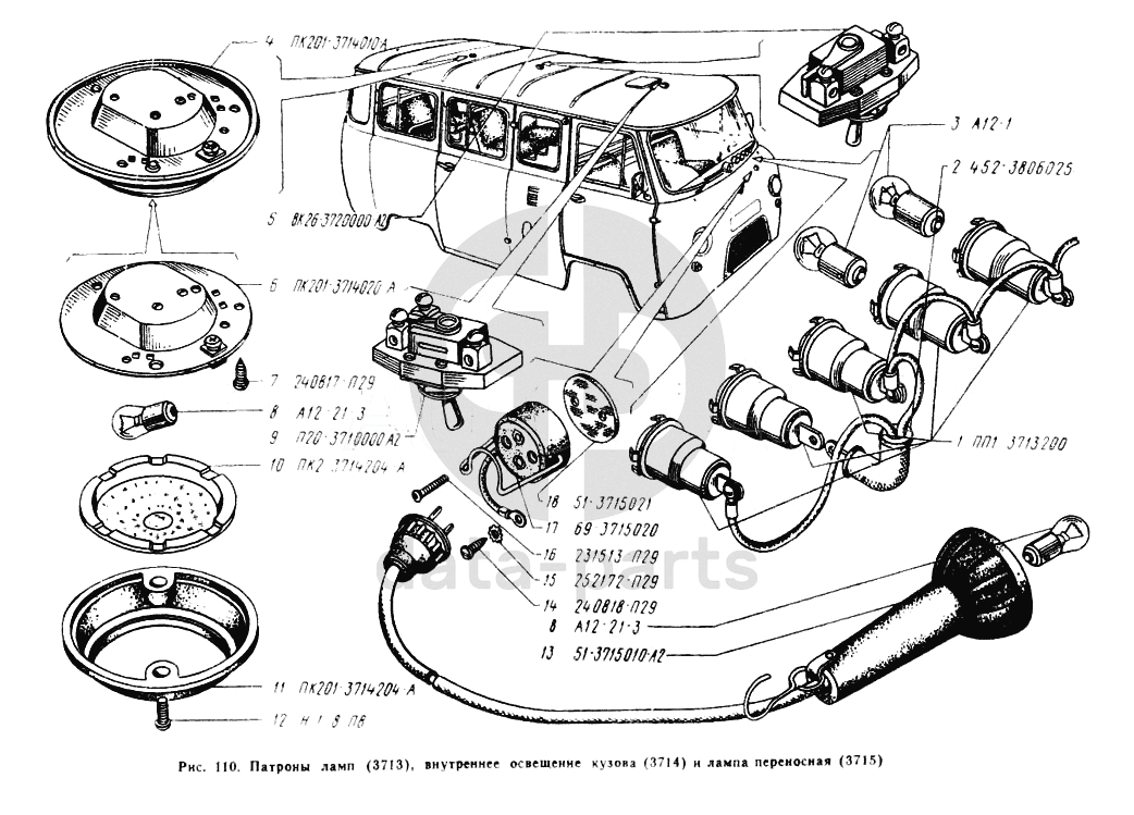 Патроны ламп, внутреннее освещение кузова, лампа переносная УАЗ 2206