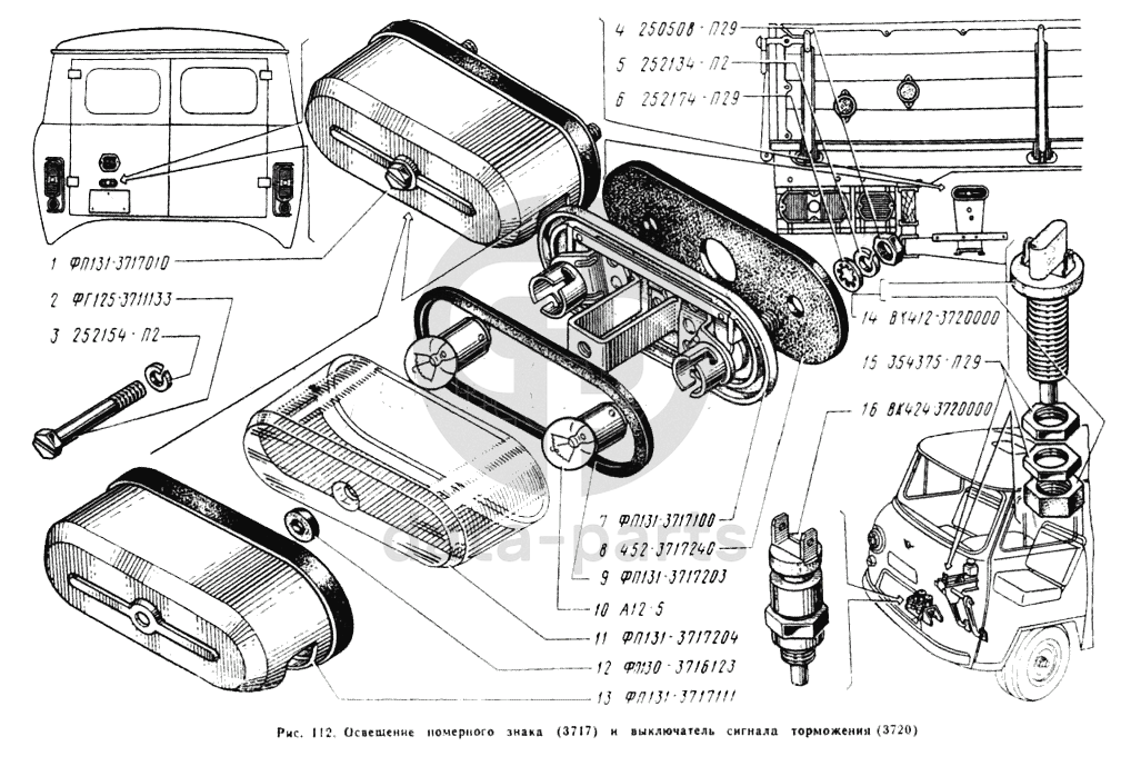 Освещение номерного знака, выключатель сигнала торможения УАЗ 2206