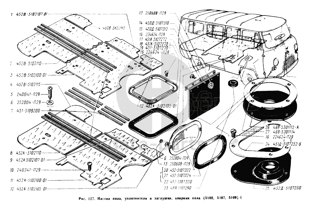 Настил пола, уплотнители и заглушки УАЗ 3303