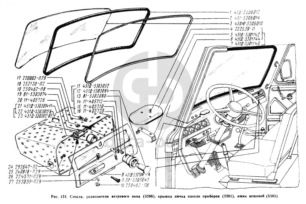 Крышка лючка панели приборов, ящик вещевой УАЗ 3303