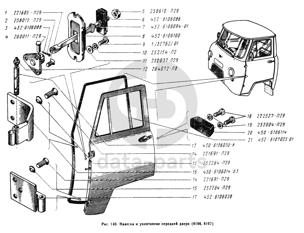 Навеска передней двери, уплотнение передней двери УАЗ 3303