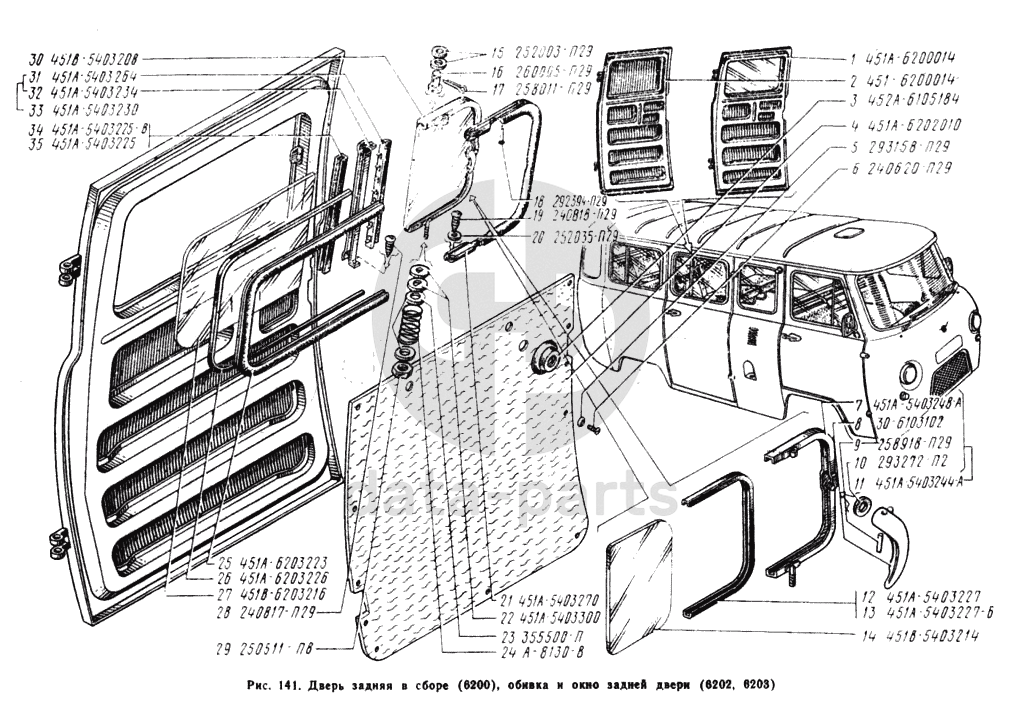 Дверь задняя в сборе, обивка задней двери, окно задней двери УАЗ 3303