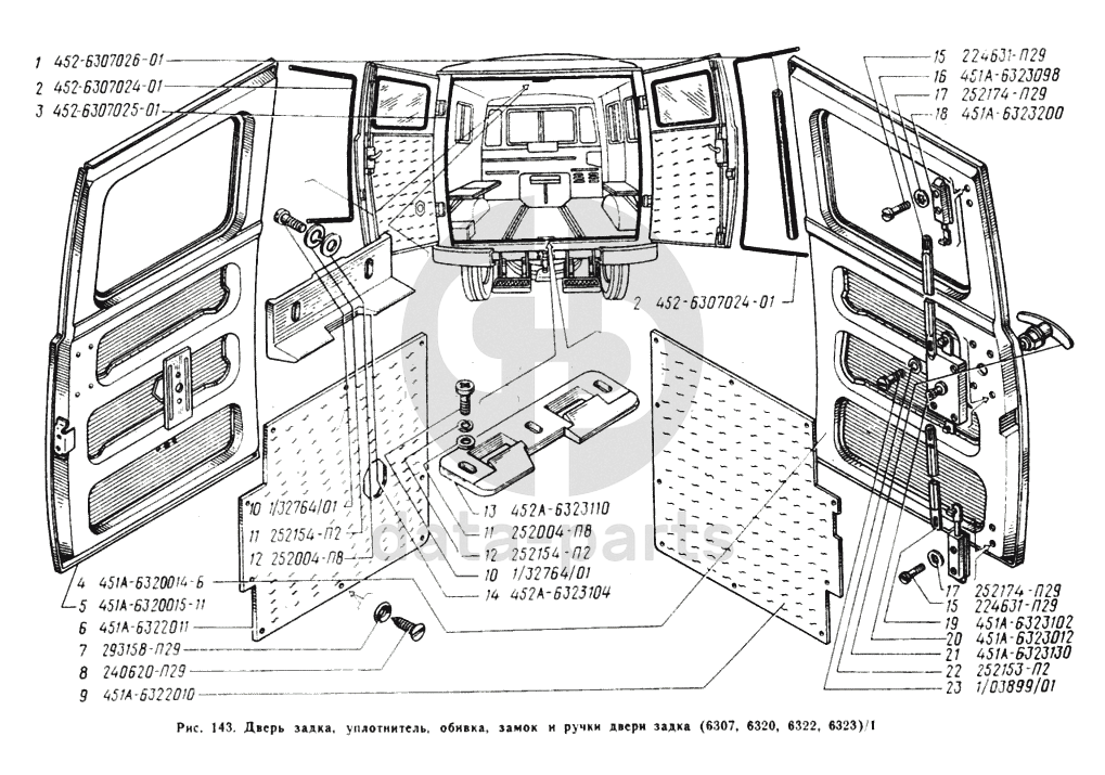 Уплотнители двери задка, дверь задка, обивка двери задка, замок и ручки двери задка УАЗ 3303