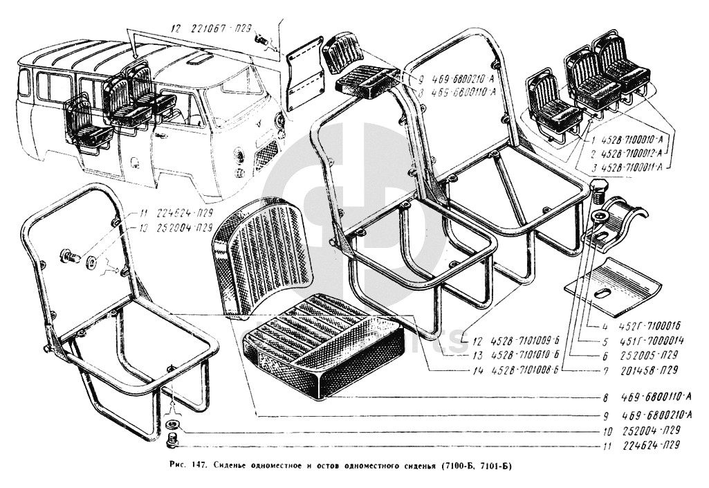 Сиденье одноместное в сборе, остов одноместного сиденья УАЗ 3303