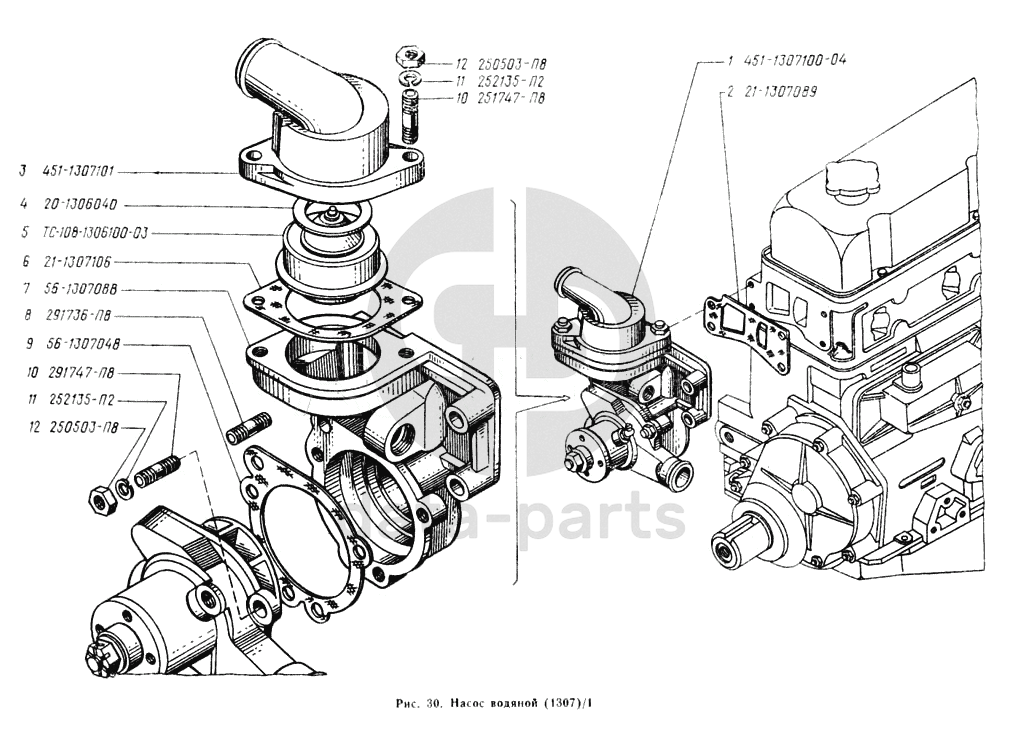 Насос водяной с кронштейном, выпускным патрубком и термостатом УАЗ 3303