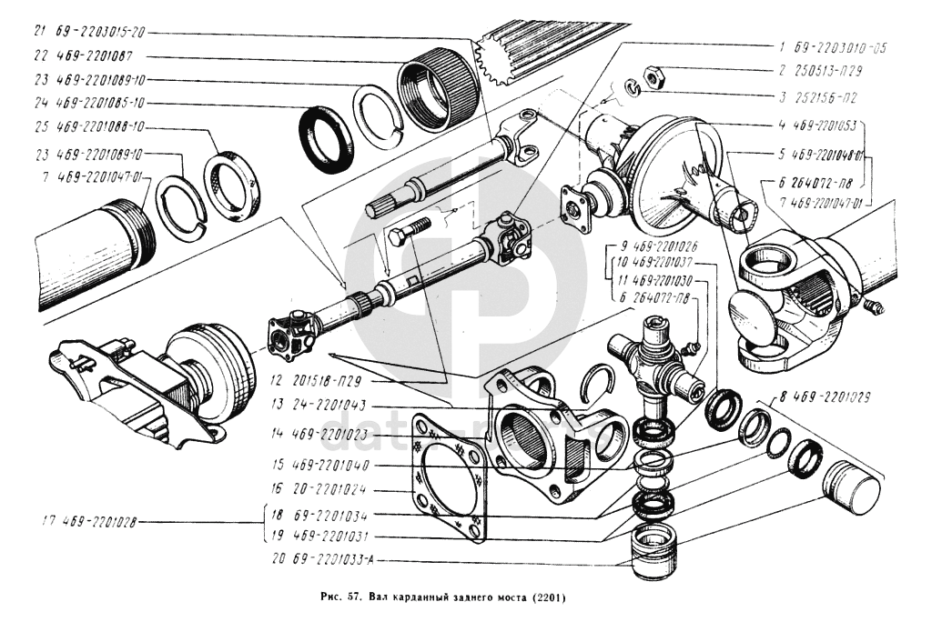 Вал карданный (Состоит из трубы 69-2203018-В, шлицованного конца 469-2201020-10 и вилки 469-2201032)