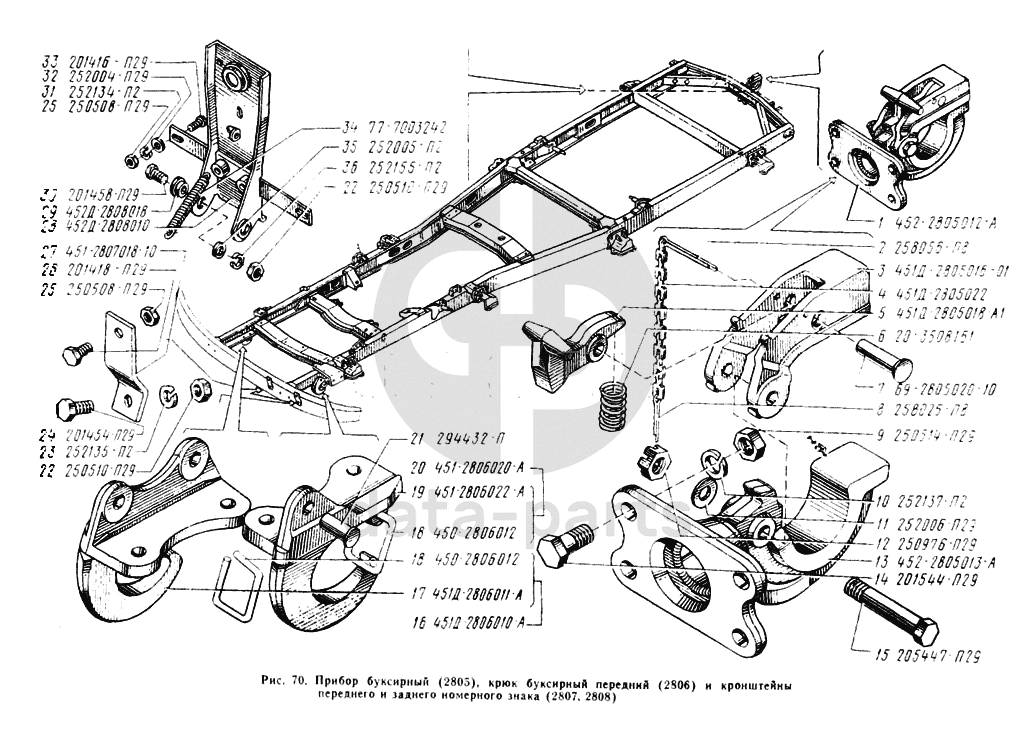 Прибор буксирный, крюк буксирный передний, кронштейн переднего номерного знака, кронштейн заднего номерного знака УАЗ 3303
