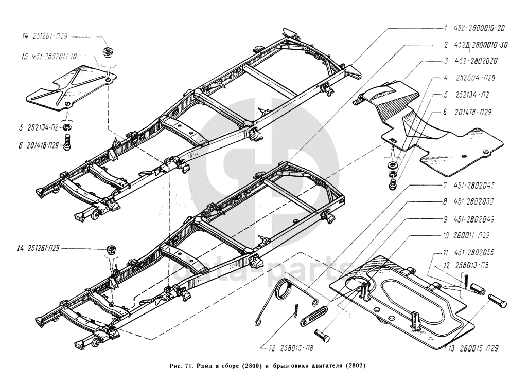 Рама в сборе, брызговики двигателя УАЗ 3303