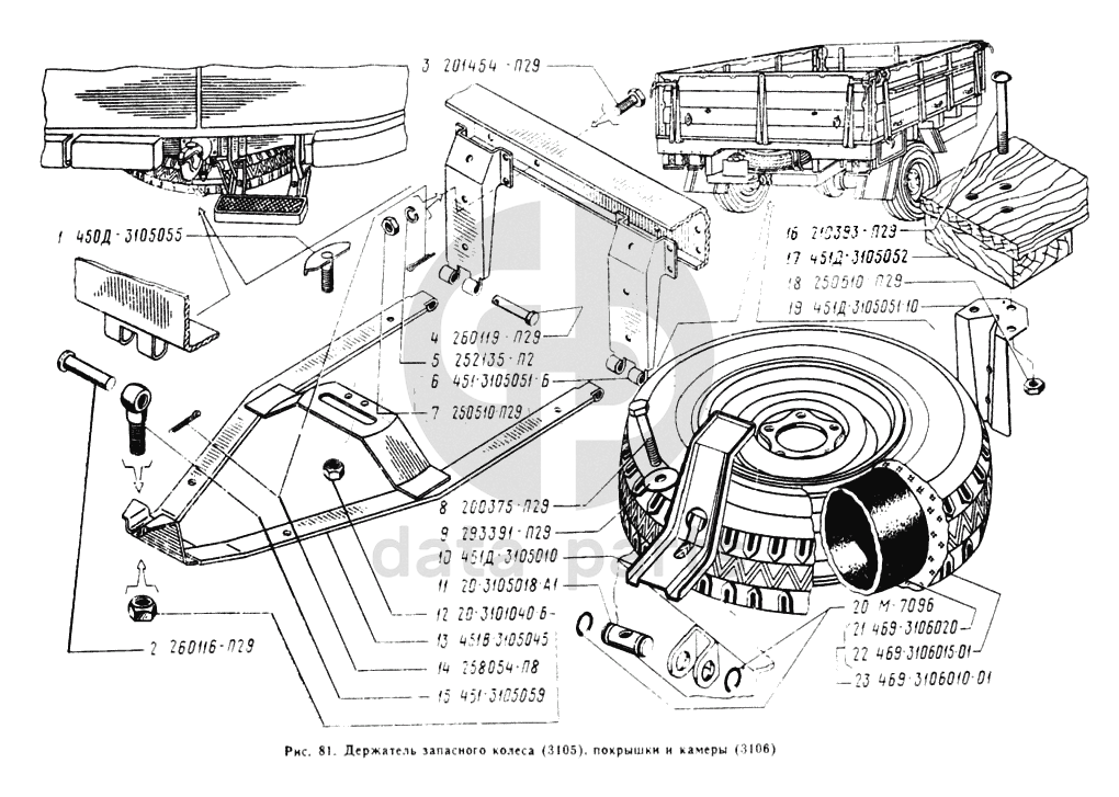 Держатель запасного колеса, покрышки и камеры УАЗ 3303