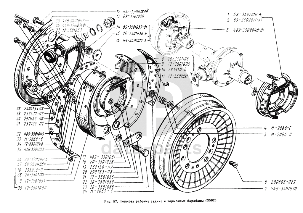Тормоза рабочие задние и барабаны тормозные УАЗ 3303