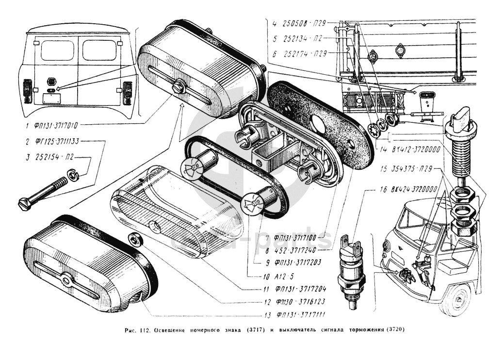 Освещение номерного знака, выключатель сигнала торможения УАЗ 3303