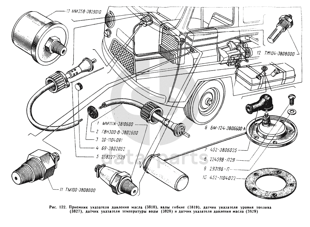 Приемник указателя давления масла, валы гибкие, датчики УАЗ 3303