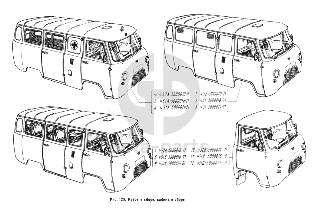 Кузов в сборе, кабина в сборе УАЗ 3741