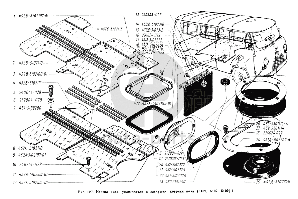 Настил пола, уплотнители и заглушки УАЗ 3741