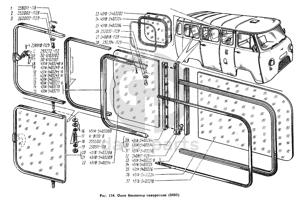 Уплотнитель поворотного стекла окна боковины на стойке в сборе