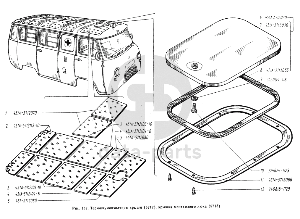 Термошумоизоляция крыши, крышка монтажного люка УАЗ 3741