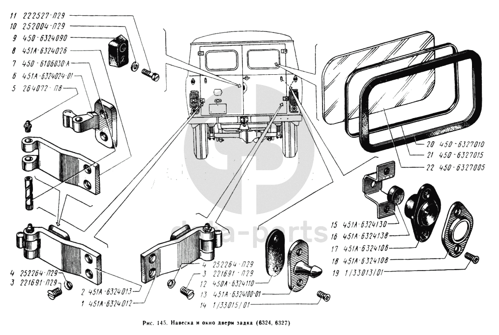 Навеска дверей задка, окно двери задка УАЗ 3741
