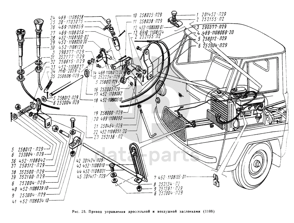 Привод управления дроссельной и воздушной заслонками УАЗ 3741