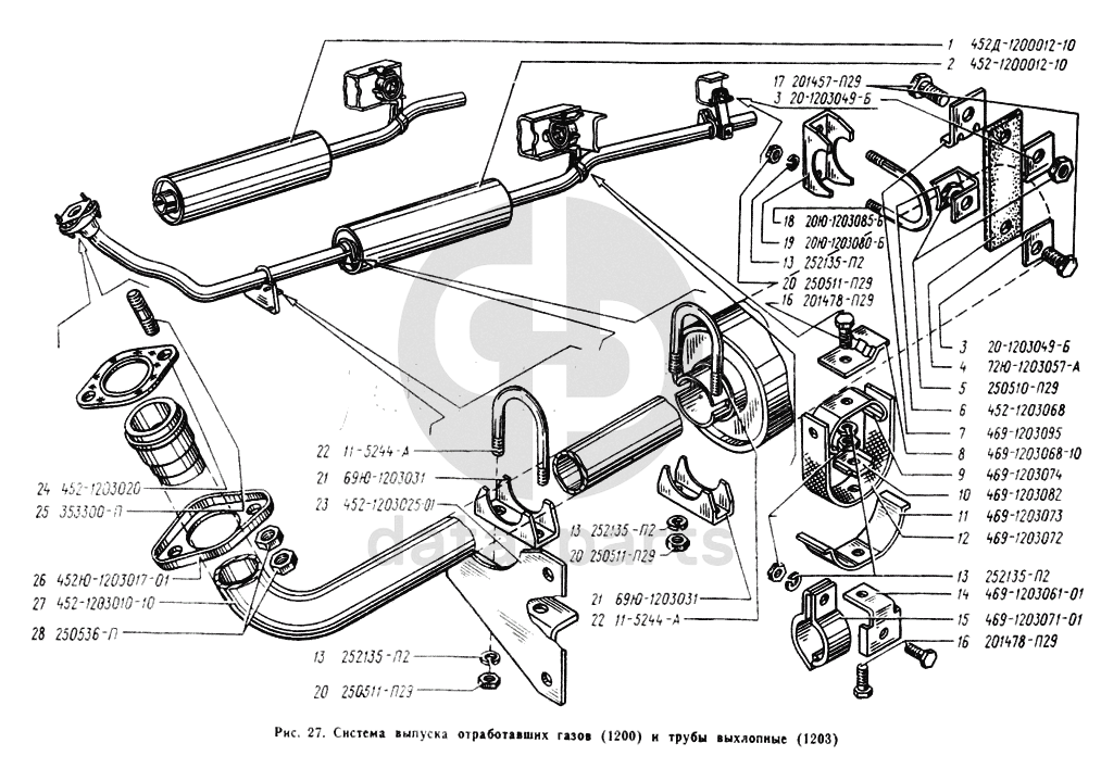 Система выпуска отработавших газов, трубы выхлопные УАЗ 3741