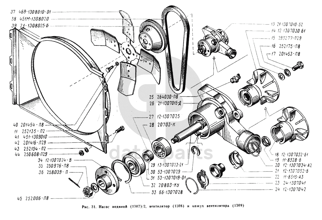 Насос водяной с кронштейном, выпускным патрубком и термостатом, вентилятор и кожух вентилятора УАЗ 3741