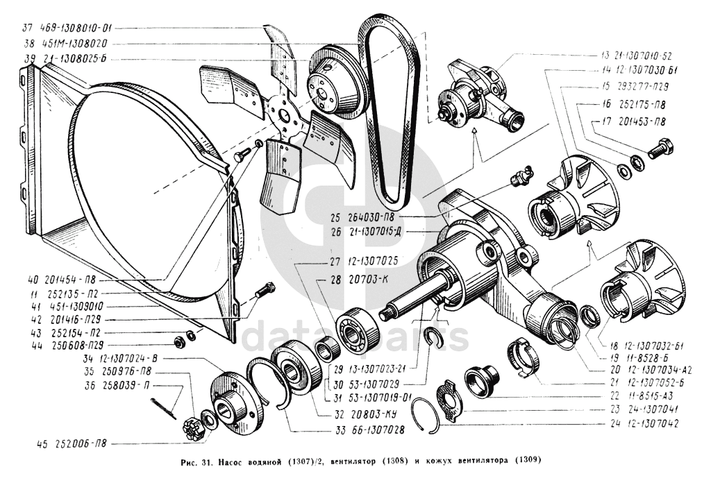 Вентилятор, кожух вентилятора и насос водяной УАЗ 3741