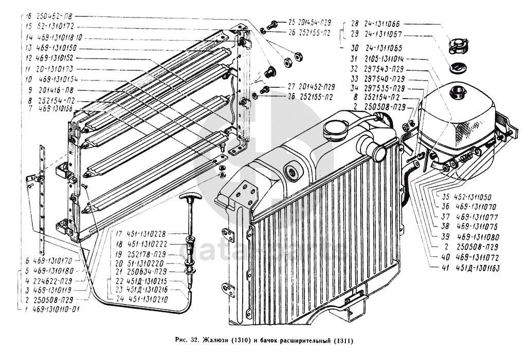 Жалюзи и привод, бачок расширительный УАЗ 3741