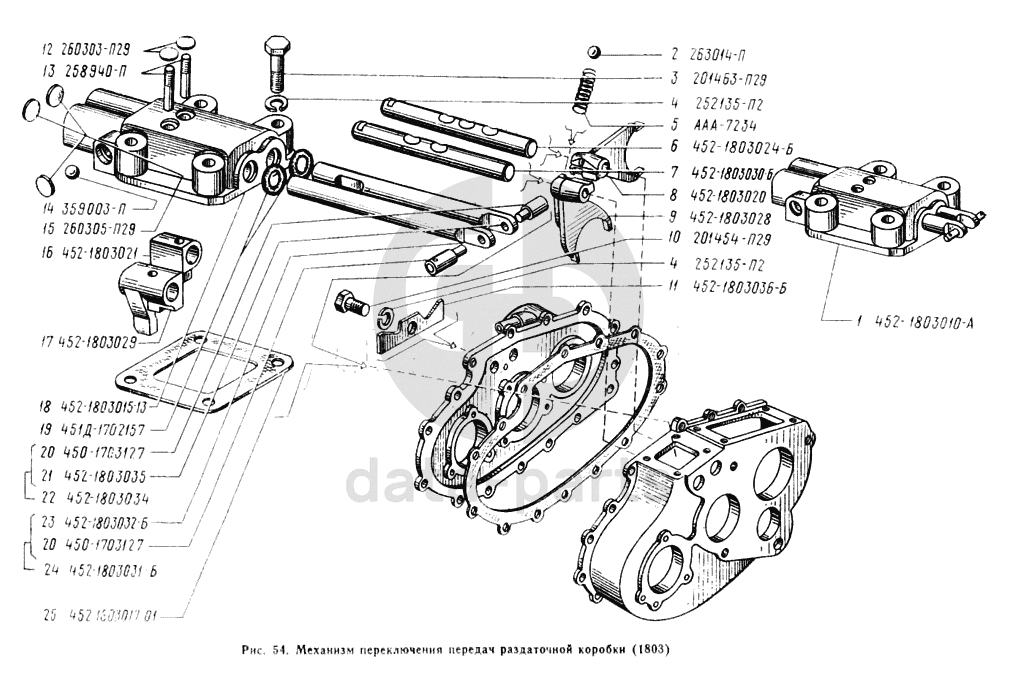 Механизм переключения передач раздаточной коробки УАЗ 3741