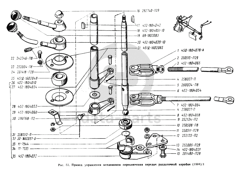 Привод управления механизмом переключения передач раздаточной коробки УАЗ 3741