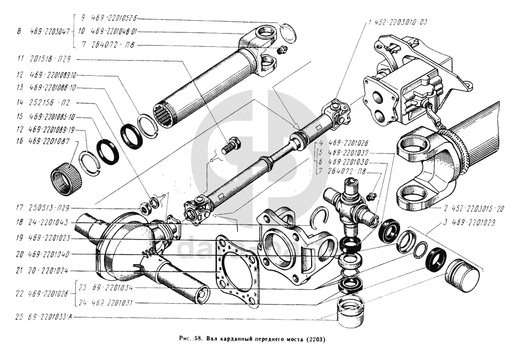Вал карданный (Состоит из трубы 69-2203018-В, шлицованного конца 469-2201020-10 и вилки 469-2201032)