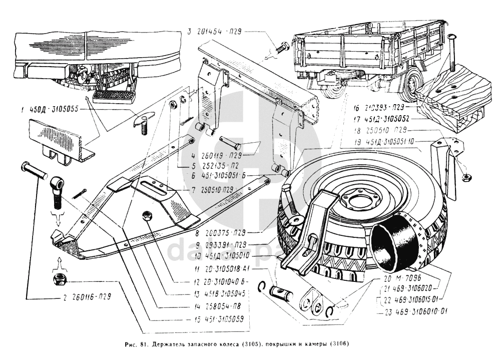 Держатель запасного колеса, покрышки и камеры УАЗ 3741