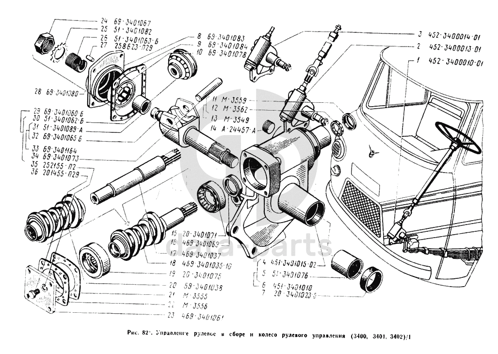 Управление рулевое без рулевого колеса, колонки и сошки в сборе
