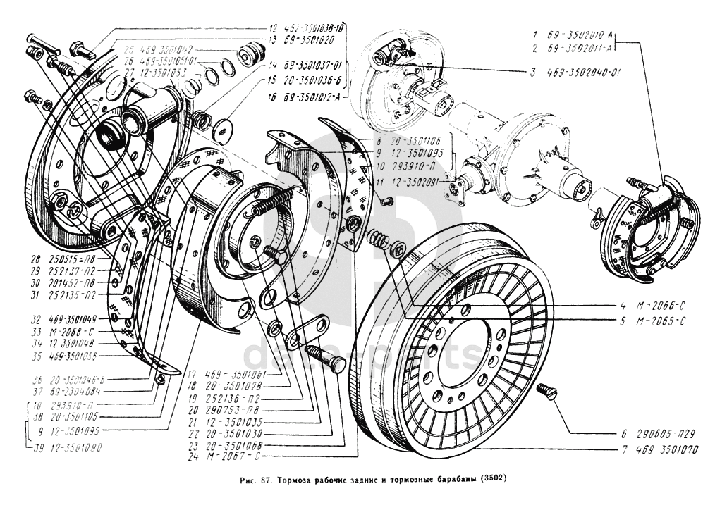 Тормоза рабочие задние и барабаны тормозные УАЗ 3741