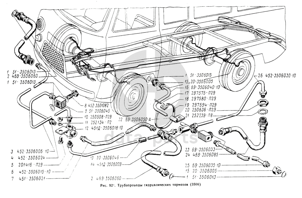 Трубопроводы гидравлических тормозов УАЗ 3741