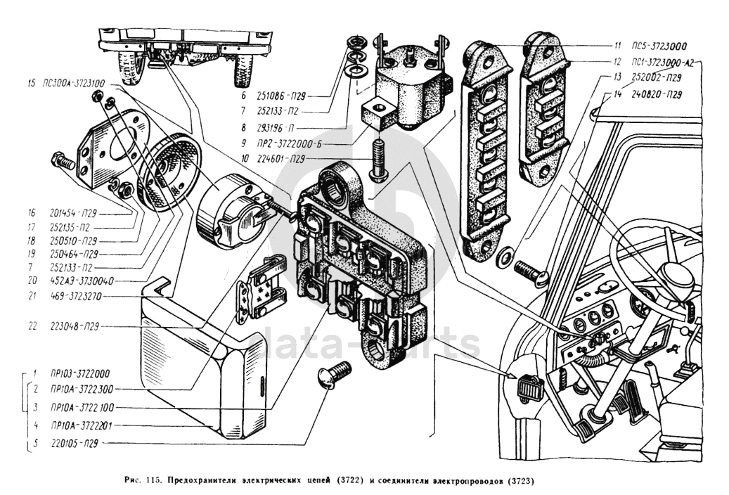 Предохранители электрических цепей, соединители электропроводов УАЗ 3741