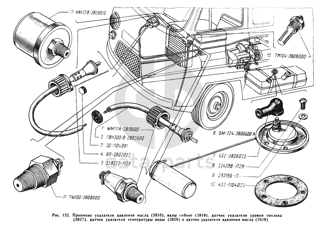Приемник указателя давления масла, валы гибкие, датчики УАЗ 3741